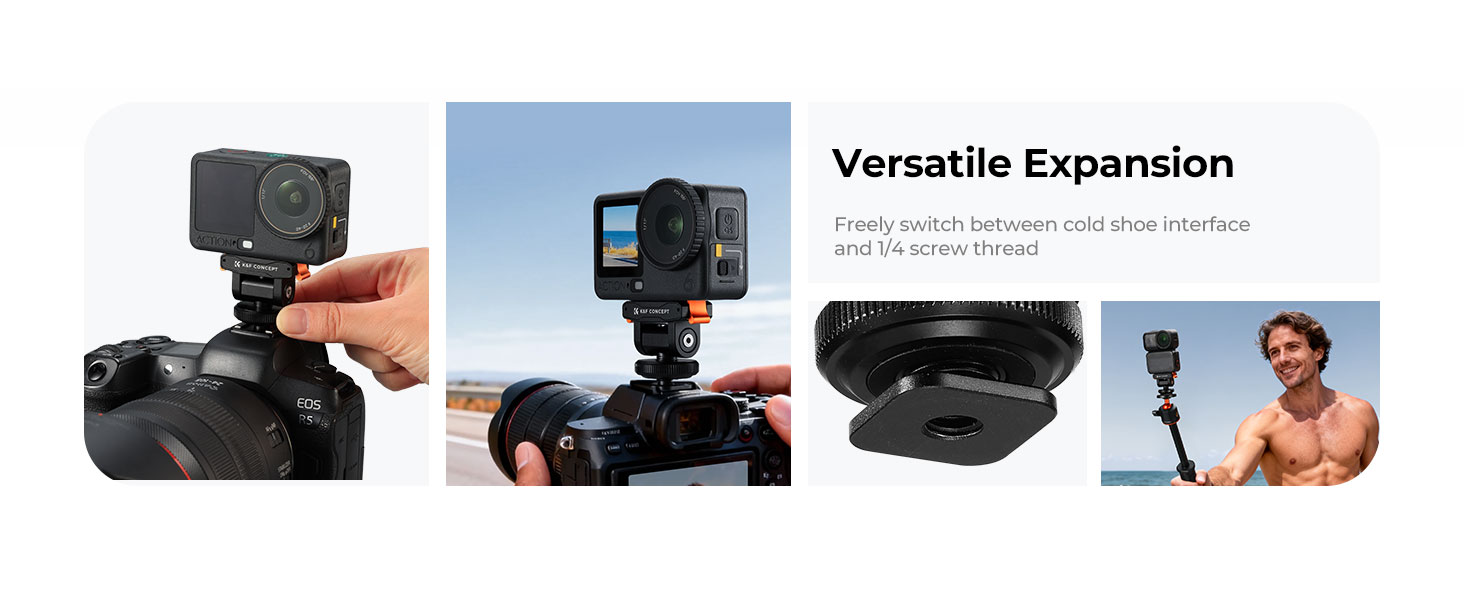 | Features | Adaptability,Scalability | Expand accessory compatibility | Multi-accessory switching | Secure Threaded Installation | Tilt 180°, Rotation 360° | Expand accessory compatibility |