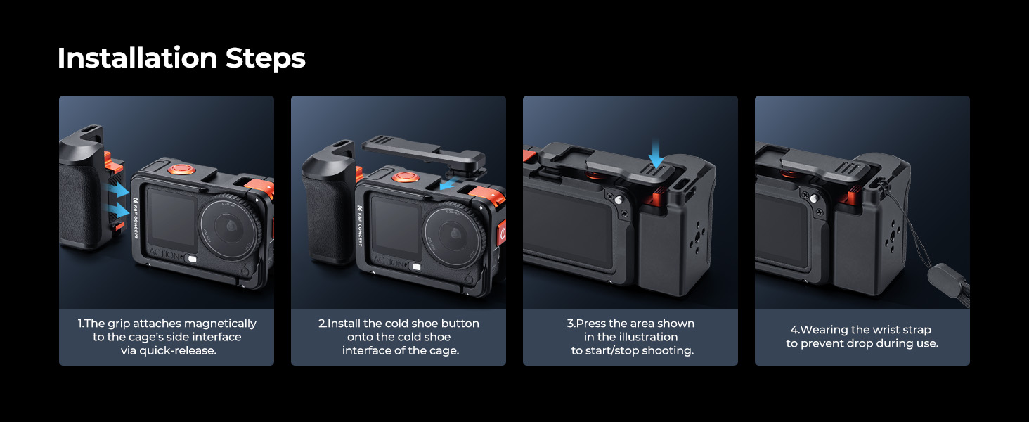 Snap On, Snap Off: With the magnetic quick-release system, the handle securely snaps onto the cage and detaches just as easily. Enjoy effortless setup and the freedom to go handheld in seconds, no tools required.