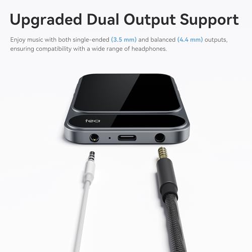- 3.5 mm & 4.4 mm Dual Outputs, Widely Compatible – Tea Pro DAC Amp upports BT and wired input, with 3.5 mm single-ended and 4.4 mm balanced outputs. Works across iOS, Android, Windows, and macOS. Offers high-quality codecs including SBC, AAC, LDAC, aptX, aptX HD, aptX Adaptive, and supports up to 768 kHz/32-bit PCM and DSD512 for authentic hi-res audio.