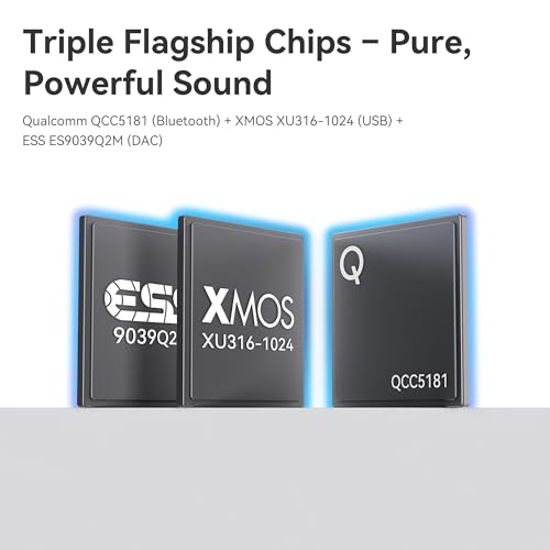 - Triple-Chip Desktop-Grade Sound – Tea Pro headphone amp combines ESS ES9039Q2M DAC, XMOS XU316-1024 USB chip, and Qualcomm QCC5181 wireless decoder to deliver rich, detailed sound. With aptX HD and advanced audio codecs, every note comes alive—crisp, clear, and immersive, whether wired or wireless.