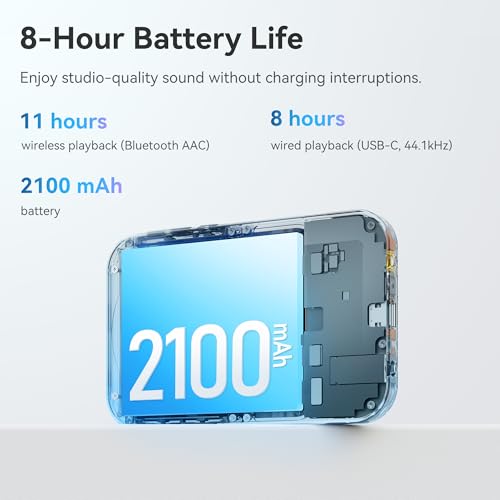 - 2100mAh Battery & 11 Hours of Music – Equipped with a 2100 mAh battery, Tea Pro portable DAC Amp delivers up to 11 hours of wireless playback and 8 hours wired playback. Enjoy uninterrupted, studio-quality sound wherever you go.