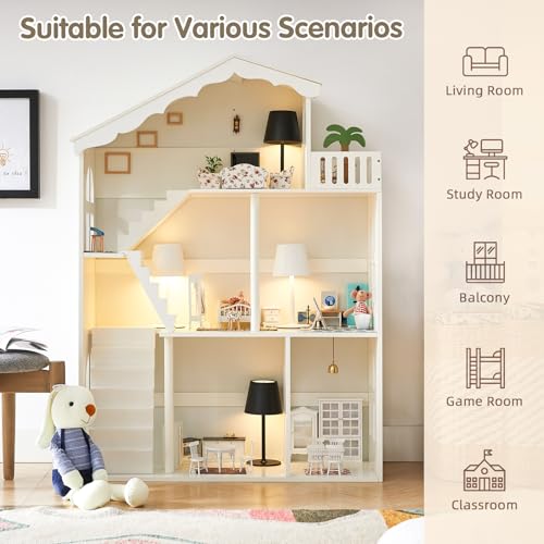 - Versatile Storage Solution: With its open design, this doll storage bookshelf can hold books, toys, dolls, and more; Besides, the semi-open design provides easy access, so that children can easily reach into each floor, rearrange furniture, and interact with their dolls.