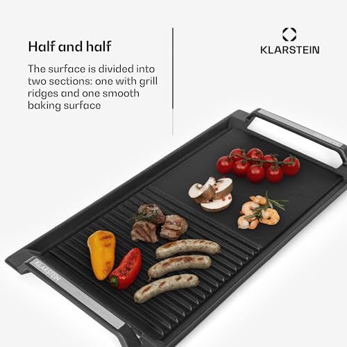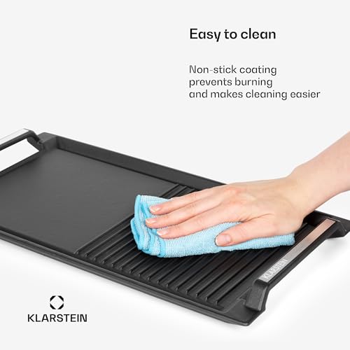 - SAFE: Handles allow for easy and safe movement of the plate, even when hot. The diner at home: The Klarstein Delicatessa Grill Pan grill plate transforms your induction hob with flex zone into a hot grill.
