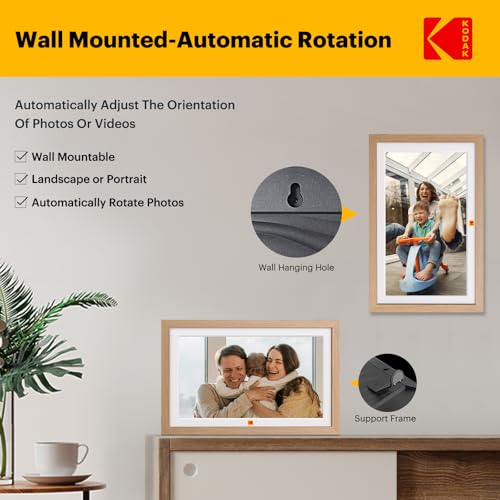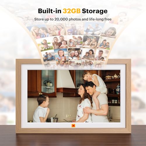 KODAK Digital Photo Frame, 15.6 inch, Touch Screen, WiFi enabled, Resolution 1920 * 1080 16:9, Built in 32GB memory, Burlywood Frame, photo, music, video, weather, calendar, clock, alarm