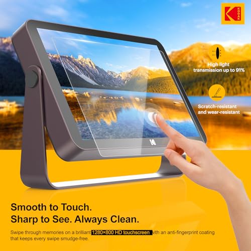 - 【10 inch IPS HD Touchscreen】Kodak digital photo frame 10.1 inch is equipped with 1280×800 high resolution IPS screen. Touch screen upgrade, using G+G material, with a light transmittance 20% higher than other G+P products. Multi-touch technology makes touch more sensitive, more accurate and faster response speed.