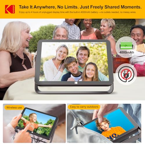 KODAK Digital Photo Frame with Battery, 10 inch WiFi Digital Picture Frame with 64GB Memory, HD IPS Touchscreen, Supports Calendar, Clock, Weather, Shares Pictures, Videos and Music via App/Email/USB