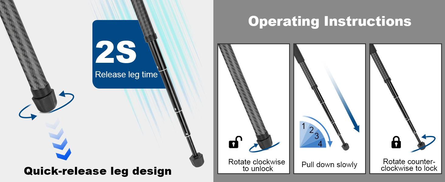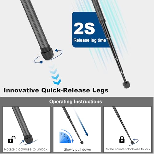 【Effortless Adjustments】Utilizing a 5-section leg design and a quick tightening mechanism, this camera tripod allows for quick and easy height adjustments, with a working height up to 160cm/63in. This innovative design saves time, helping you capture every shooting or hunting moment with ease. The non slip rubber feet ensure stability and with a storage bag for easy transport.