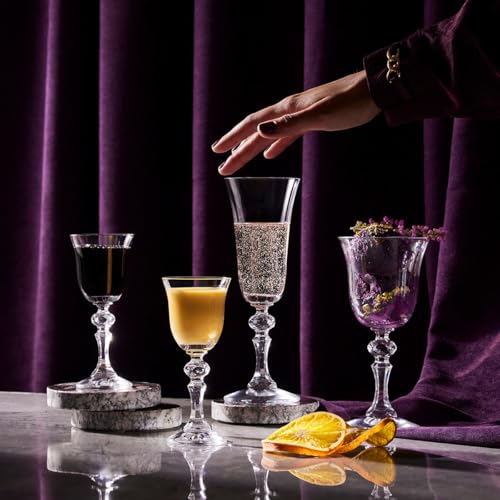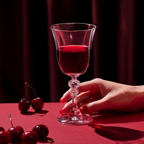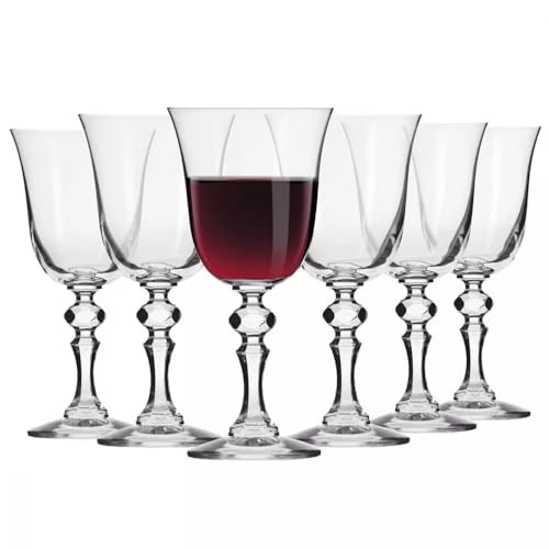 Krosno – Red Wine Glasses 250 ml – Set of 6 – Krista Collection – Lead-Free Crystal – Elegant Design with Richly Decorated Stem