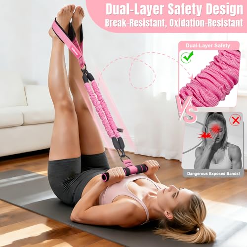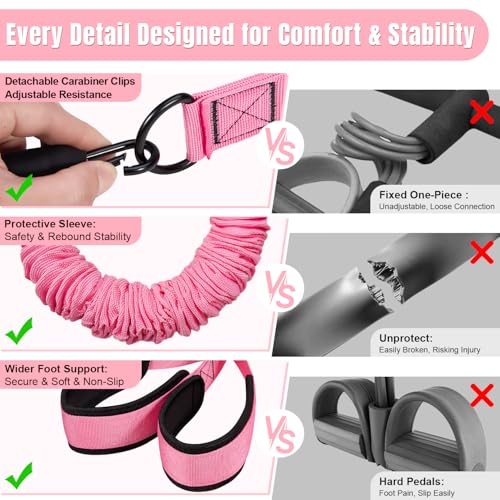 - 【Safer Dual-Layer, 0% Breakage Risk】 Unlike ordinary exposed resistance bands, this pedal resistance band features high quality natural latex tubes with a dual-layer protective sleeve, designed to avoid sudden snap-back that could hit your face or eyes during workouts. Sleeve helps slow oxidation and wear, improving durability for long-term home exercise use. Resistance bands for working out is safer choice for beginners, women and seniors who value confidence and peace of mind while training.