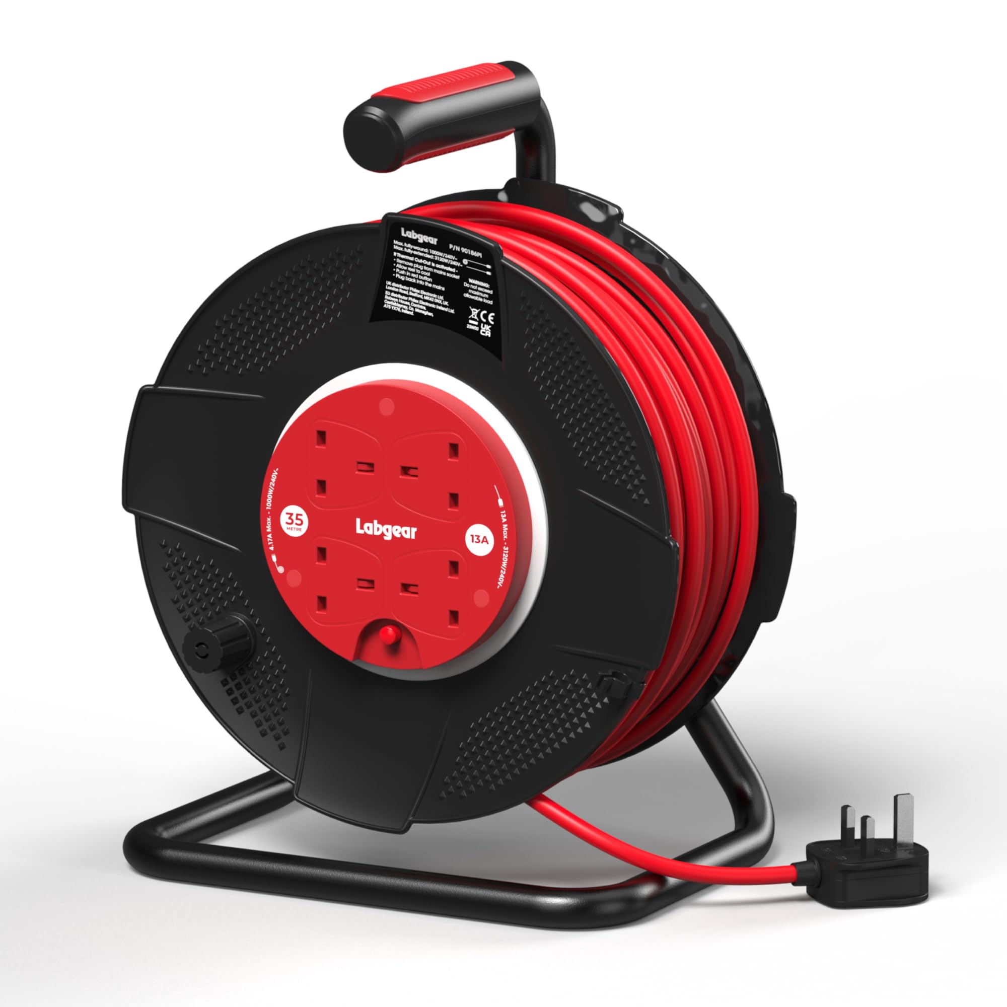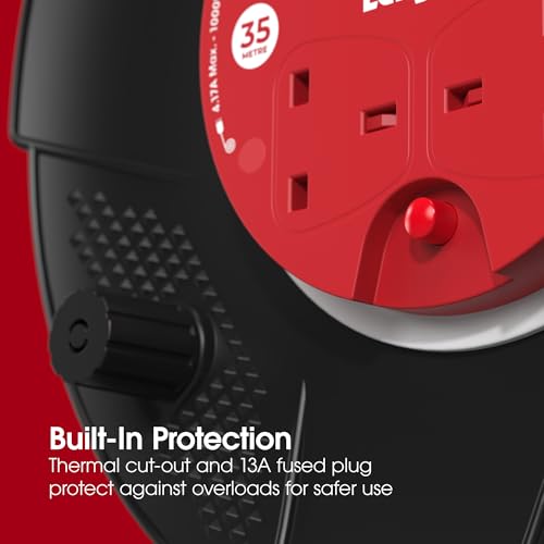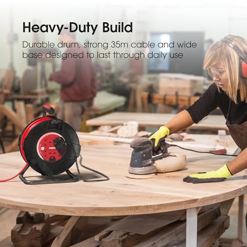 ✔️ 35M MAXIMUM REACH: The long 35m cable provides exceptional range for outdoor, workshop, or site use, this Labgear power reel gives you the flexibility to work further from your power source, ideal for garage, garden, or renovation use where dependable reach is essential.