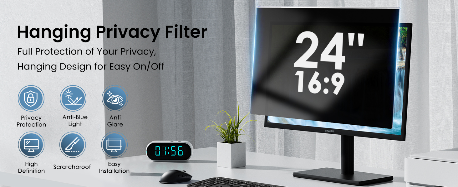 Enhanced Viewing Experience: Enjoy a blue light free and private workspace with this 24-inch privacy screen, perfect for maintaining focus and confidentiality in your work environment
