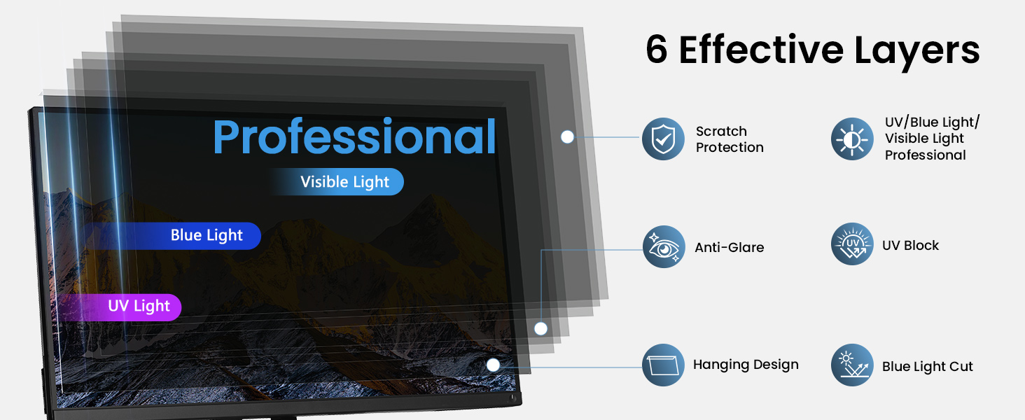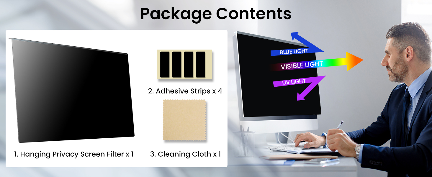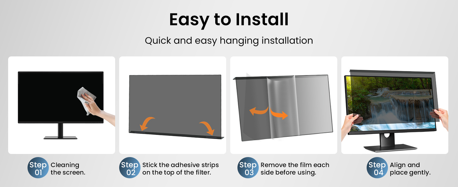 Effortless Installation: Simply remove the protective film and place this hanging privacy screen on your monitor in just two easy steps, so you can easily take the privacy filter on and off your monitor. No bubbles, no blocking of vision, no falling off. Note: It is normal for the brightness to decrease after using this product and it will not affect vision