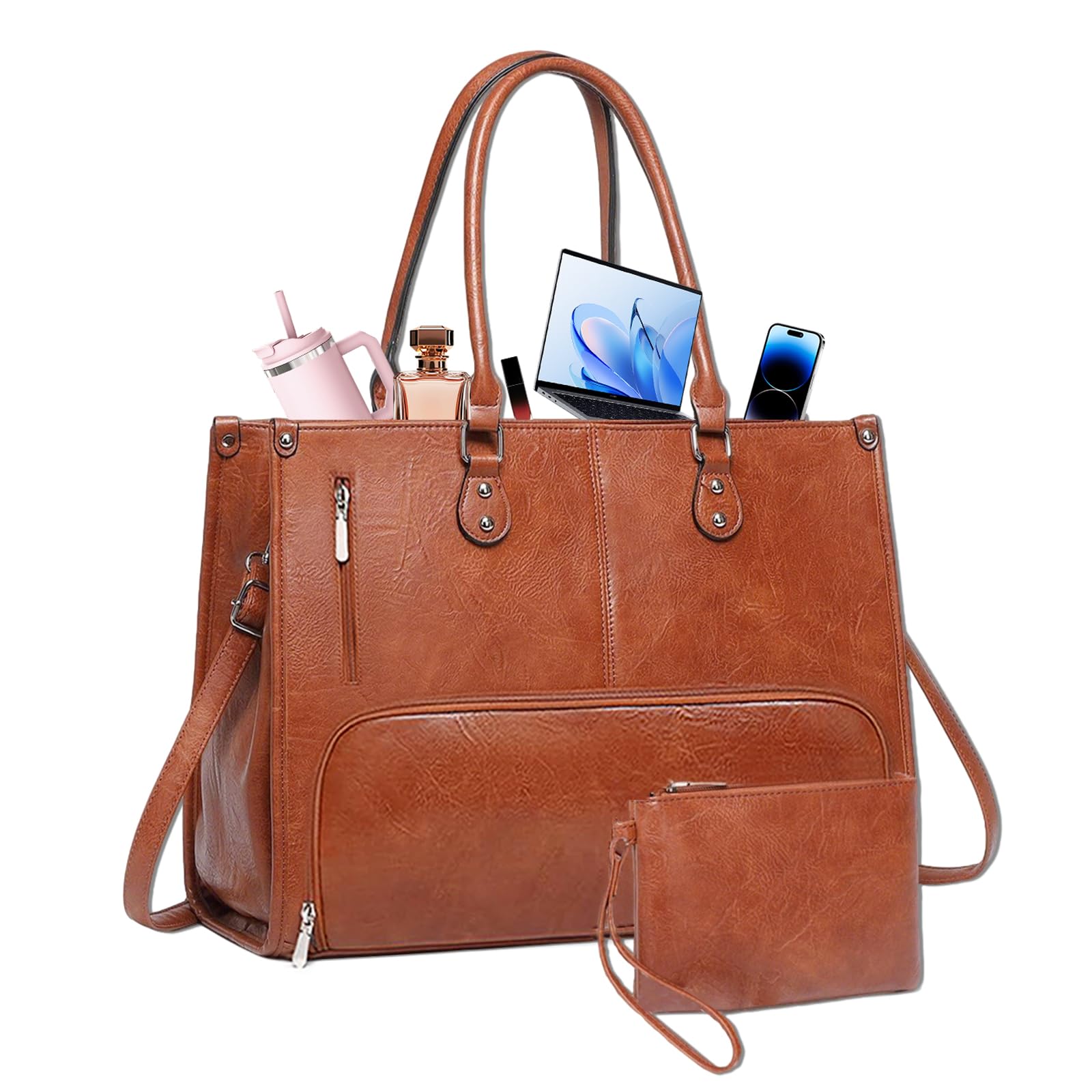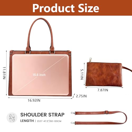 Laptop Bags for Women with Clutch Bag, 15.6 Inch PU Leather