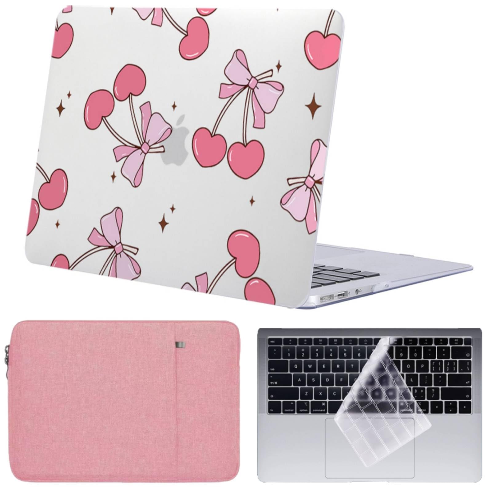 Laptop Shell for MacBook Pro 14 inch M5/M4/M3/M2/M1 Case 2025 2024 2023 2022 2021 Model A3434 A3401 A2442 A3185 A3112 A2992 A2918 A2779,Plastic Cover & Bag & Keyboard Skin,Pink Cherries & Bows