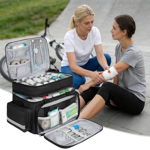 - 【Spacious Double-Layer Design】Designed with two roomy layers to store all your first aid essentials — from plasters, bandages and ointments to medical instruments and prescription bottles — all in one organised place.