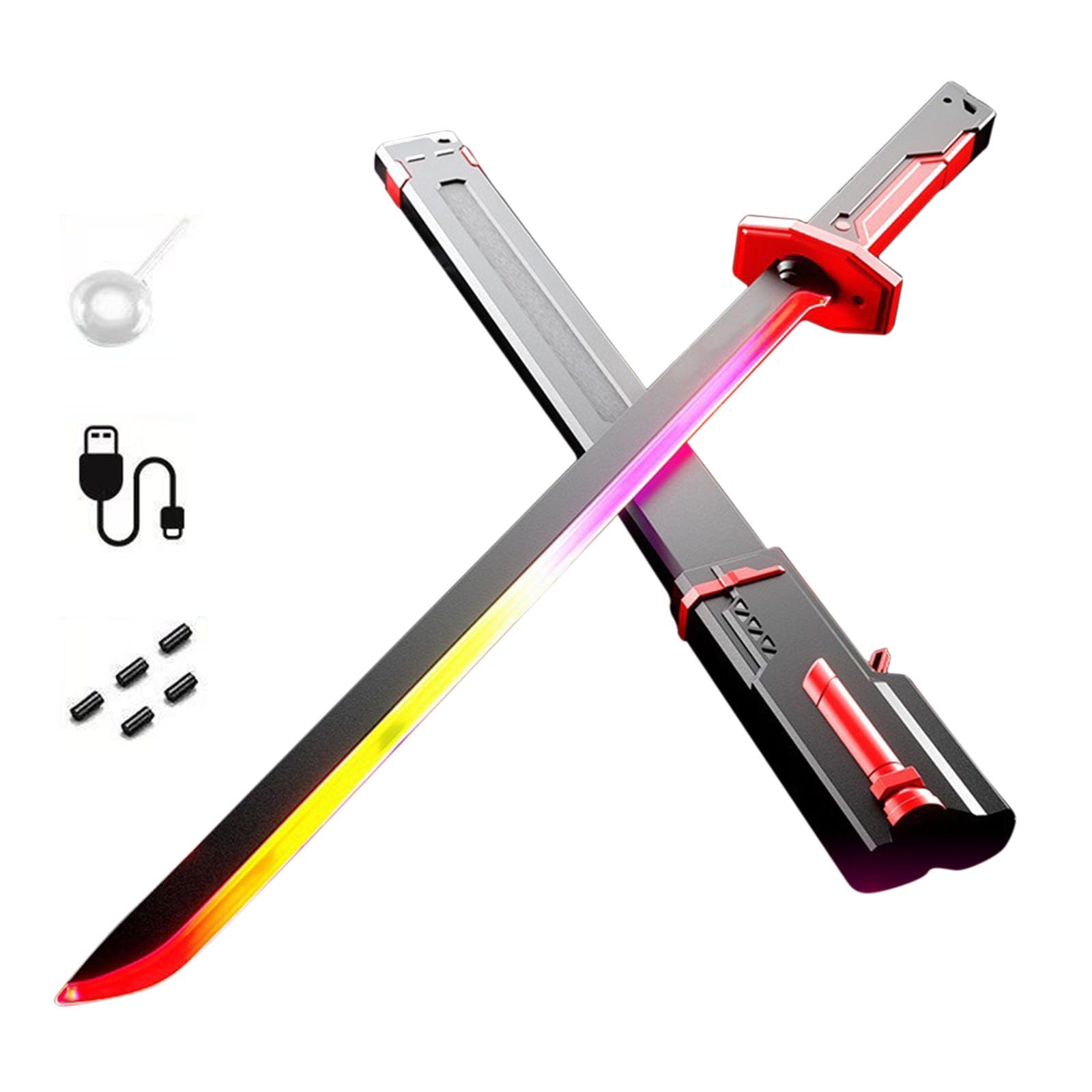 Specifications: Name:Sparkblade Sword with Sparks Colour: Grey, Red, White Length: 17.3in (44 cm)/31.5 inches (80 cm) Width: 3.74 inches (9.5 cm) Thickness: 1.77 inches (4.5 cm) Special Effects: LED illumination, spark effects, mist spray, impact sound effects Material: ABS plastic + electronic components Power Source: Battery-powered (LEDs and sound effects) Battery capacity: 500 mah Applicable age: 14 years old and above
