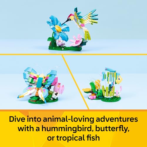 LEGO Creator 3in1 Wild Animals: Colourful Hummingbird – Bird Toy Transforms into a Butterfly or Fish Figure – DIY Room Decor Idea – Creative Gift for 8+ Year Old Girls & Boys – 31384