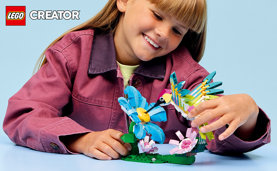 3in1 NATURE TOYS – The LEGO Creator Wild Animals: Colourful Hummingbird toy for 8+ year old girls and boys lets kids build and rebuild 3 animal figures on stands with the same LEGO bricks