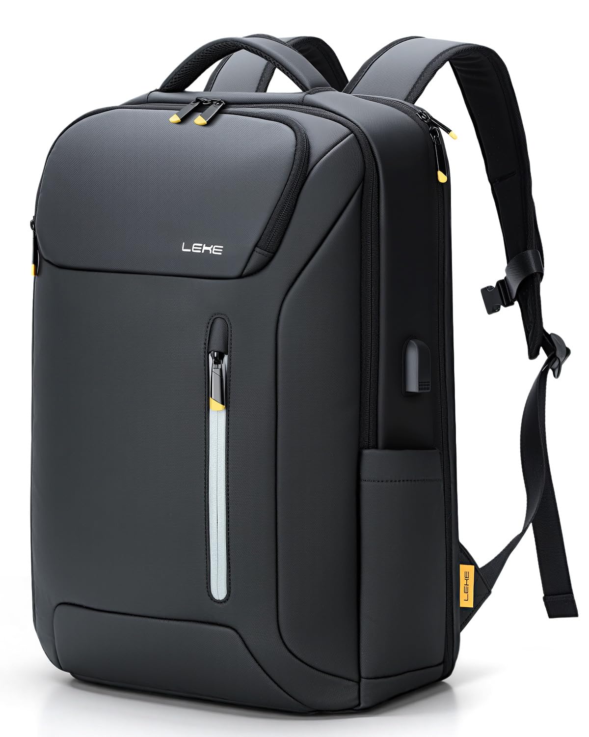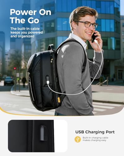 Lekebobor Laptop Backpack for Men, 17.3 Inch 30L Water-Resistant Business Rucksack with USB Charging Port for Travel, Work Commute and Overnight Trips, Black
