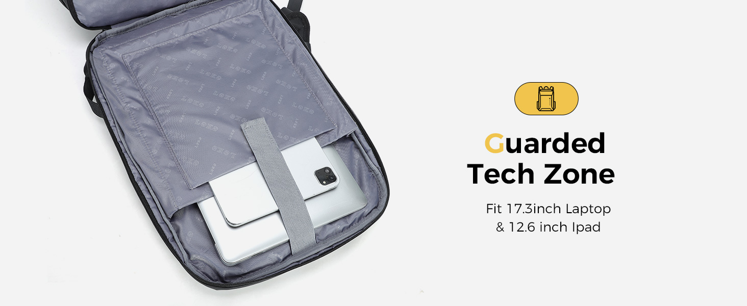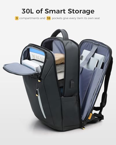Spacious 30L with Smart Organisation: Carry more, stay organised. Measuring 47.5 x 32 x 20.5cm with three distinct compartments and ten practical pockets, this laptop bag backpack smartly stores your 17” laptop, tablet, and daily essentials,so you're always ready and clutter-free