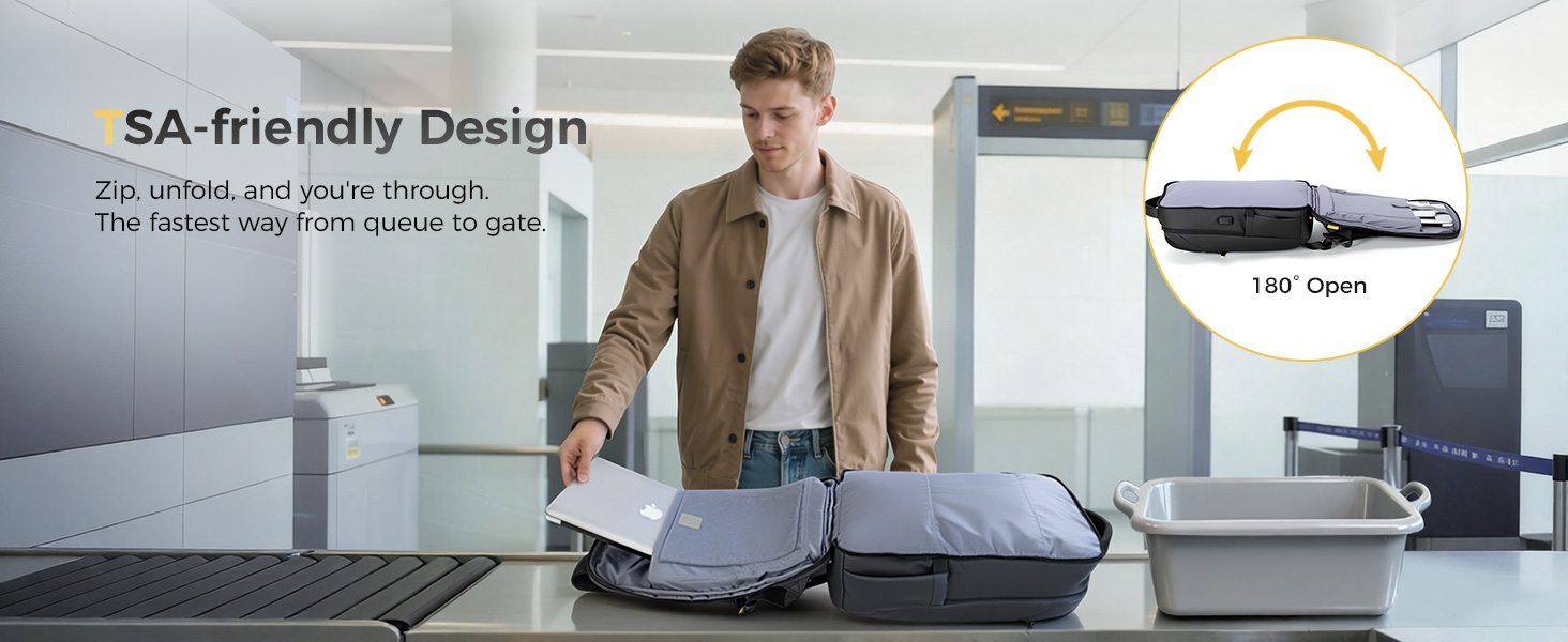 180° Lay-Flat for Easy Security Checks: Glide through airport checks effortlessly. Simply unzip and lay the travel backpack fully open for quick, stress-free airport inspections