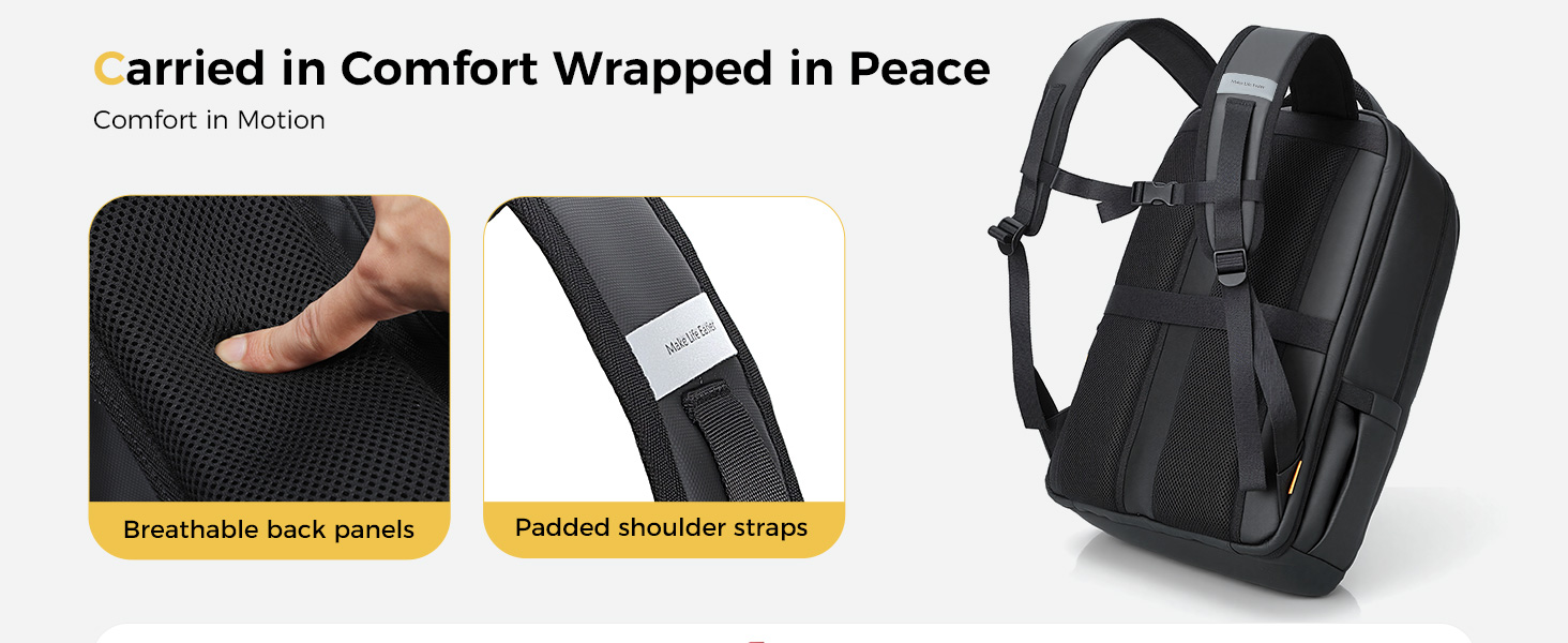 Travel-Ready with Anti-Theft Pockets:Move freely and travel smart.The laptop rucksack mens can attach to your suitcase handle for hands-free ease, and store valuables securely in hidden anti-theft pockets, ideal for commuting and short getaways
