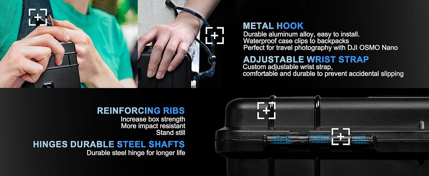 - Custom Storage: This Lekufee waterproof case includes a customized pre-cut sponges, adjustable wrist strap, metal hook. fits your DJI Osmo Nano standard combo(64GB / 128GB), and accessories.