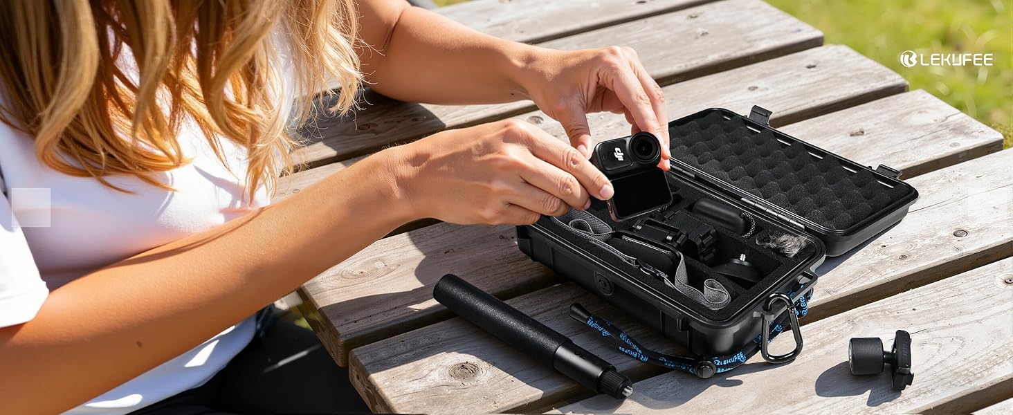 Customer Reviews 4.3 out of 5 stars23 4.8 out of 5 stars24 4.3 out of 5 stars21 4.5 out of 5 stars125 4.6 out of 5 stars115 4.7 out of 5 stars1,141 4.6 out of 5 stars33 Price £24.99 £24.99 £24.99 £24.99 £24.99 £24.99 £24.99 Compatible Devices DJI Osmo Nano DJI Osmo 360 Insta360 GO Ultra Insta360 X5 / X4 / X3 Insta360 GO 3S / 3 Gopro Hero13/12/10/9 DJI Mic Mini / Mic 2 / DJI Mic Battery Quantity 1 3 1 4 N/A 4 N/A Exterior Size 24.2 x 14.8 x 6.8 cm 24.2 x 14.8 x 6.8 cm 24.2 x 14.8 x 6.8 cm 24.2 x 14.8 x 6.8 cm 24.2 x 14.8 x 6.8 cm 24.2 x 14.8 x 6.8 cm 24.2 x 14.8 x 6.8 cm Weight 0.38 kg (0.8 Ibs) 0.38 kg (0.8 Ibs) 0.38 kg (0.8 Ibs) 0.38 kg (0.8 Ibs) 0.38 kg (0.8 Ibs) 0.38 kg (0.8 Ibs) 0.38 kg (0.8 Ibs) Case Material ABS Plastic ABS Plastic ABS Plastic ABS Plastic ABS Plastic ABS Plastic ABS Plastic Insert Material Custom Sponge Custom Sponge Custom Sponge Custom Sponge Custom Sponge Custom Sponge Custom Sponge Available Colors Black Black Black Black Black Black Black Waterproof Dustproof IP67 IP67 IP67 IP67 IP67 IP67 IP67 Padlock Hole ✘ ✘ ✘ ✘ ✘ ✘ ✘ Handle ✘ ✘ ✘ ✘ ✘ ✘ ✘ Pressure Balance valve ✔ ✔ ✔ ✔ ✔ ✔ ✔ Other Accessories Metal hook, Wrist strap Metal hook, Wrist strap Metal hook, Wrist strap Metal hook, Wrist strap Metal hook, Wrist strap Metal hook, Wrist strap Metal hook, Wrist strap