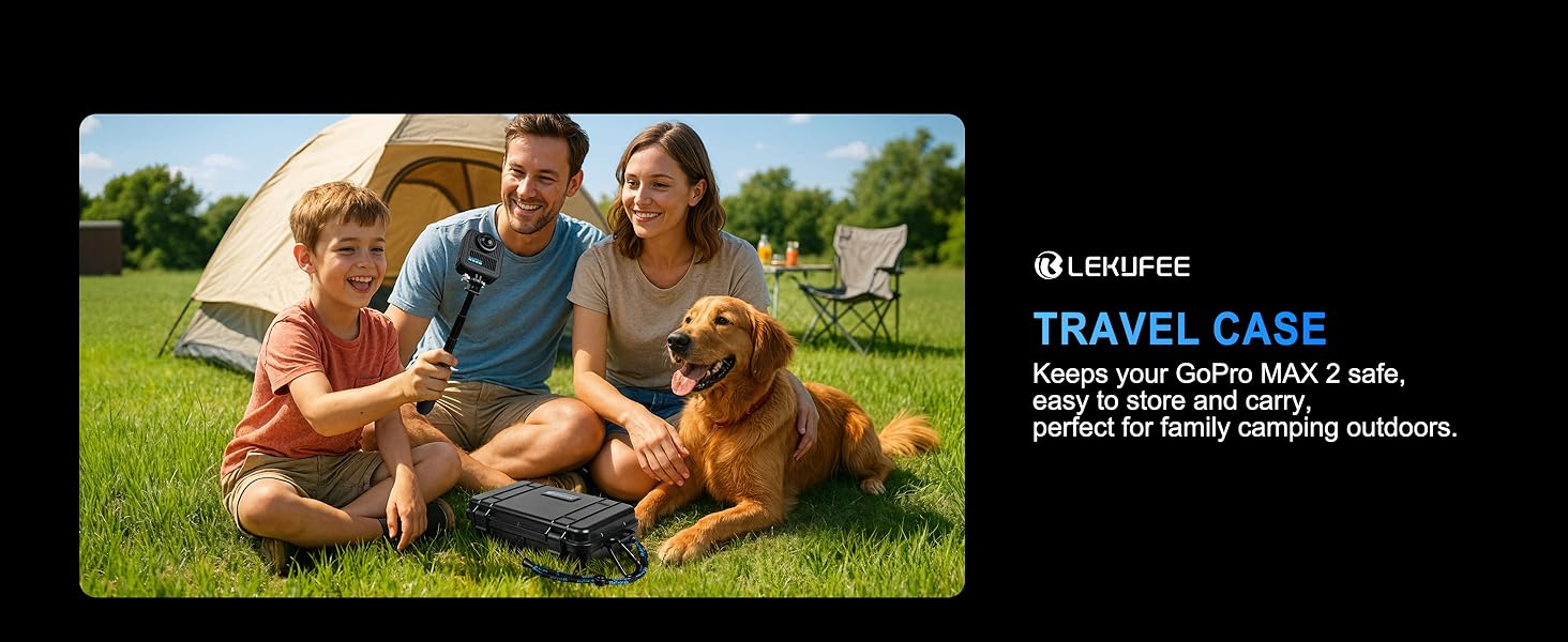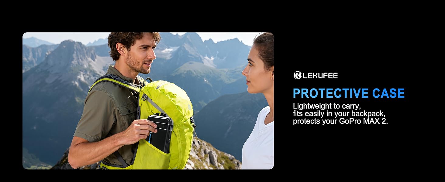 - You Can Get: 1x Lekufee Waterproof Storage Case, 1x Custom Sponges Kits, 1x Metal Hook,1x Adjustable wrist strap,1x User Manual, Our 12-month warranty and friendly customer service. (Black Hard Case Only, Not Included GoPro MAX 2 and Accessories)