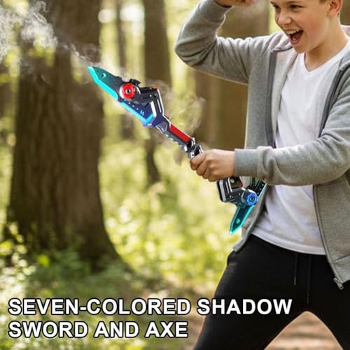 Light Up Sword & Axe, Cool Lightsaber and Axe, Dress-Up Toy Sword with Flashing LED Lights, with Spray Effect, Cosplay, Rave, Halloween Prop & Collectible