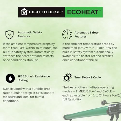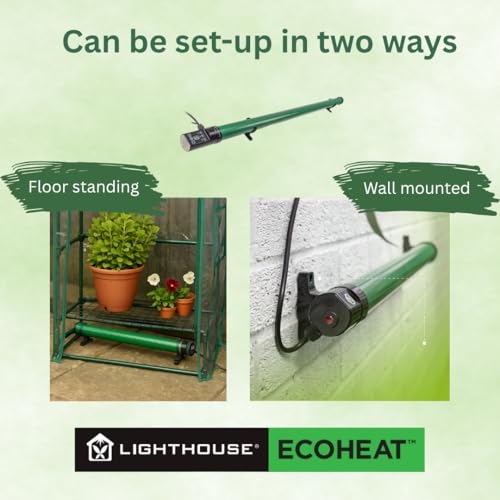 LightHouse ECOHEAT 135W Tube Heater with Thermostat – Energy Efficient Greenhouse & Garage | Anti-Frost Protection | Safe, Low-Running Cost Electric Tube Heater, Gree