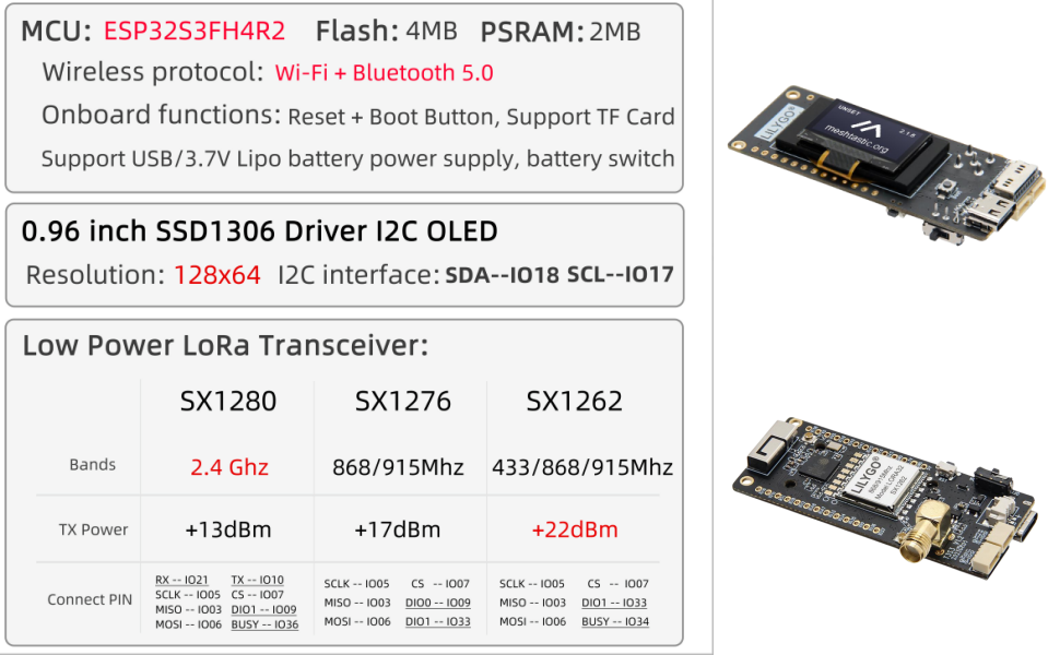 T3 S3 is a new version of the LoRa series (formerly LoRa32 series) that contains the SX1280 LoRa module. It supports the LoRa 2.4G frequency band, which allows global use, and is also equipped with the ESP32 main control chip that supports TF cards. WIKI: wiki.lilygo.cc/Github: g: g: ithub.com/Xinyuan-LilyGO/LilyGo-LoRa-Series/tree/master/examples/RadioLibExamples/SX1280
