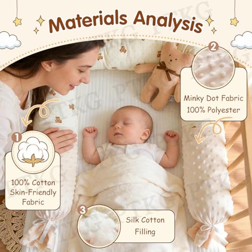 - All-Round Protection: With a 13cm diameter, this pillow neatly covers bed edges, cushioning impacts when babies roll over or play. It effectively prevents tiny heads, arms and legs from getting stuck in bed rail gaps, safeguarding your baby's safe development. Lightweight and flexible, it can be easily rolled up and unfolded, making it convenient to carry for outings or travel.