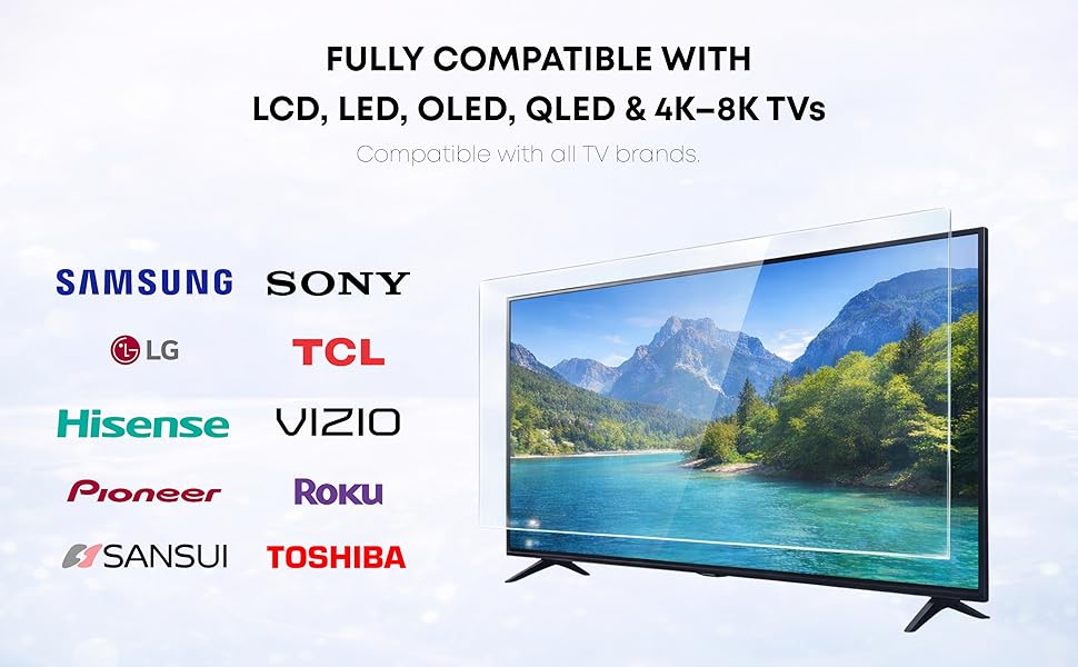 Designed for the modern British home. Lixgate is fully compatible with all major television brands sold in the UK, including Samsung, LG, Sony, Panasonic, Pioneer, Hisense, and Philips. It also offers a perfect fit for UK-specific brands like Sky Glass, Bush, JVC, Toshiba, SANSUI ,Roku , and TCL. Whether you have a high-contrast OLED, a bright QLED, or a standard LED/LCD, our protector’s precision-cut frame ensures full-edge coverage across all models.