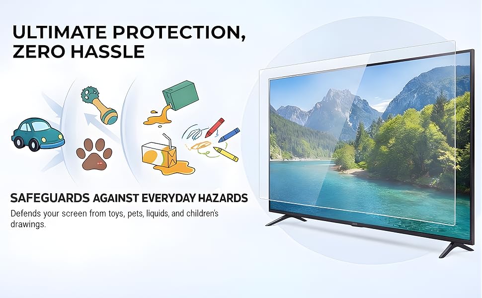 - Edge-to-Edge Front Surface Coverage – Designed to cover the entire front panel of your TV, providing complete frontal protection against accidental touches, debris, and unexpected impacts.