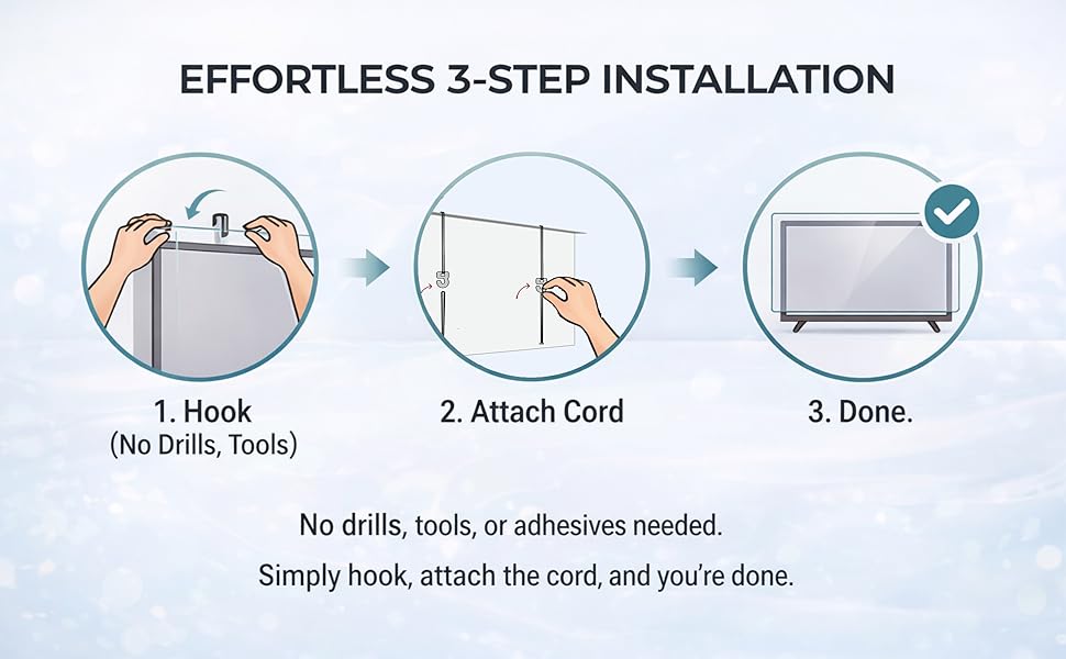 Forget the frustration of complicated setups. Lixgate features a "Zero-Hassle" installation process that takes less than 15 seconds. Simply Hook it over the top of your TV, Attach the secure cord, and you're Done. No drilling, no tools, and no messy adhesives that leave residue on your expensive equipment.