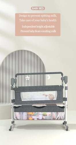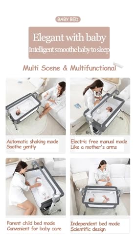 Luourzme Electric Baby Crib Bluetooth Co-Sleeping Baby Bassinets, Convertible Baby Bedside Crib, Foldable Newborn Portable Cradle With Mattress and Bluetooth Music Speaker (Electric-GREY)