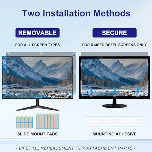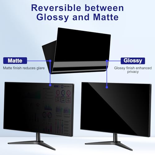 【ANTI-GLARE & DOUBLE SIDED DESIGN】 Due to the different needs of individuals, the privacy screen for computer monitor 27 inch has a double sided design. Matte side and glossy side. The matte side has better anti-glare effect. The glossy side has higher anti-peeping effect. Plug-in Installation. So it can be taken down to change the other side at any time according to your needs.