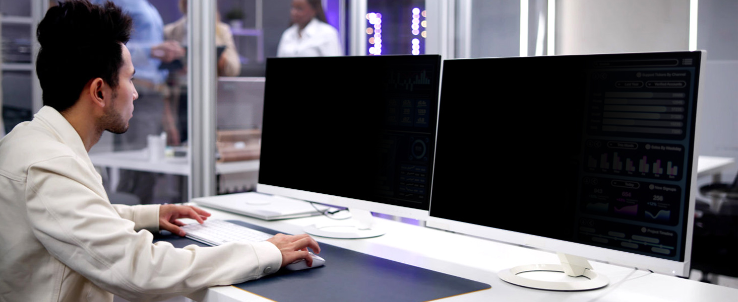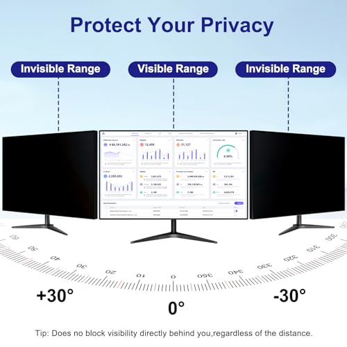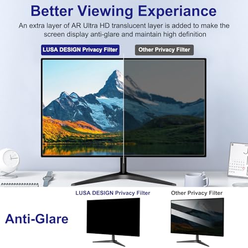 【PERFECT FOR OPEN WORKSPACES】 LUSA DESIGN is committed to improving workplace security and making the work environment safer and more comfortable. Whether it's R&D data,financial data, and other data that needs to be kept confidential, our monitor privacy screen 27 inch blocks direct prying eyes from 30+ angles from the side. You no longer need to be constantly alert to whether people around you are seeing your private or confidential data. Full of security! * Doesn't block visibility behind you