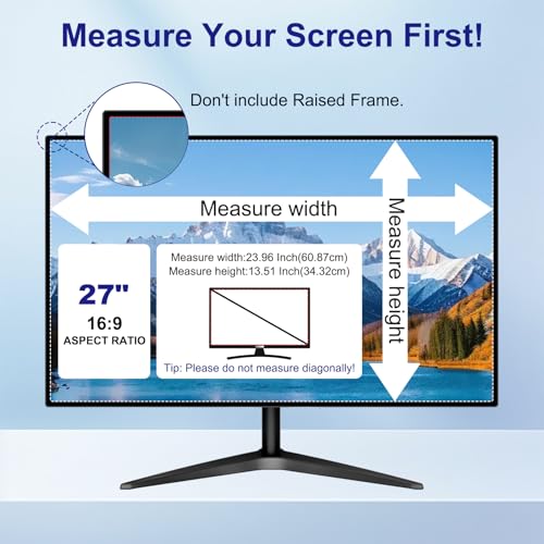 【27 PRIVACY FILTER DIMENSIONS】 Width:23.96 inches (608.7mm), Height:13.51 inches (343.2mm).Aspect Ratio 16:9. Our computer screen privacy shield is perfectly compatible with a wide range of computer models.* Tips:To avoid wasting your time by returning or exchanging, please check the width and height dimensions of your monitor screen before ordering. If you have any questions about the size, please feel free to contact us.