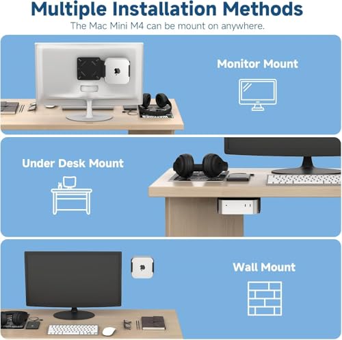 - 【Workspace Decluttering Solution】Eliminate desk clutter by mounting the Mac Mini M4 discreetly behind your monitor, freeing valuable space, or mount it separately under a desk or on a wall for flexible placement.