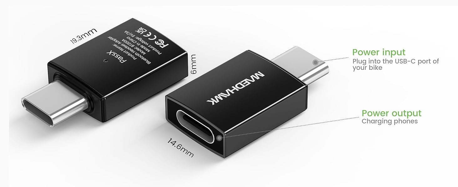 - Plug the Maedhawk PassX (Bypass 2.0) into your bike’s USB port (USB-A bikes need a simple adapter – not included)
