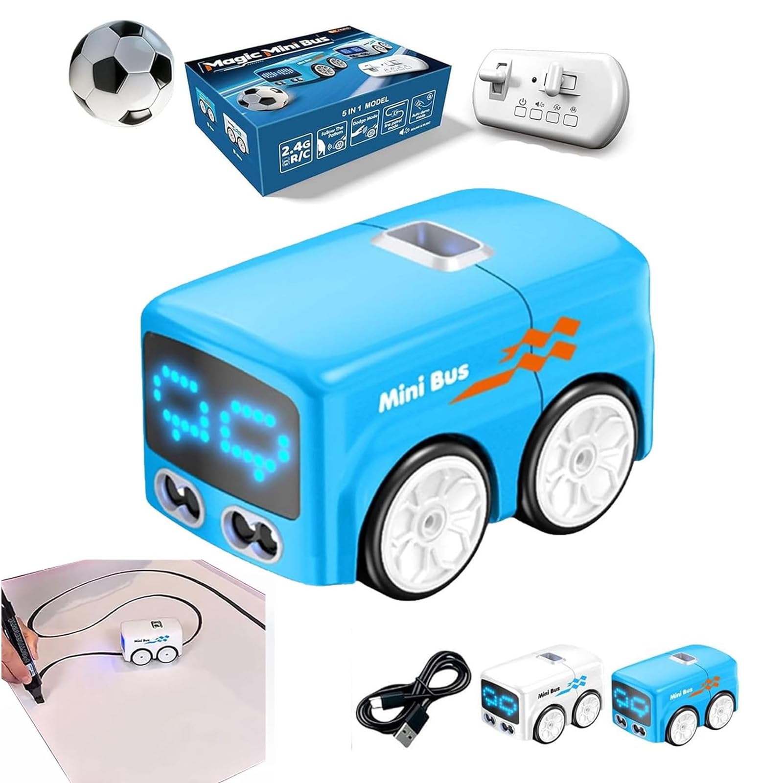 Package Include: 1PC * Magic Mini Rc Bus 1PC * Mini Soccer Ball 1PC * Circular Map 1PC * Instruction Manual 1PC * USB Charging Cable 1PC * Color Box Packaging