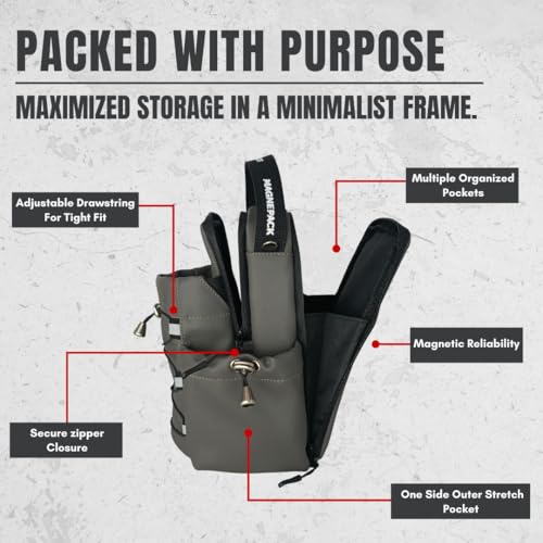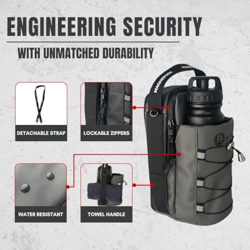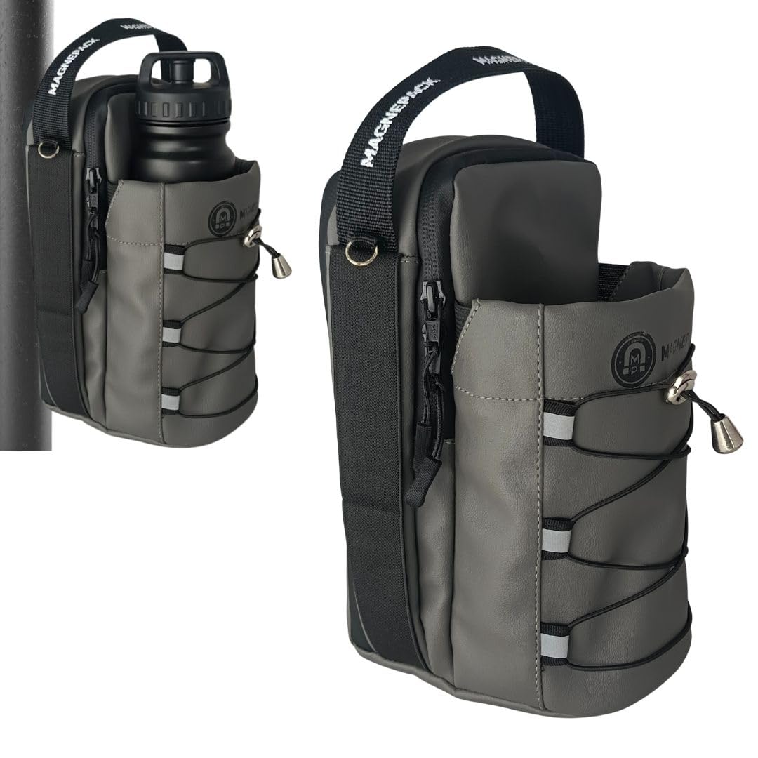 Magnepack Magnetic Gym Bag with Bottle Holder – Heavy-Duty Water Bottle Sling with Hook Strap, Multiple Pockets, Fits Most Racks – Compact, Durable, and Portable Gym Companion (Grey)