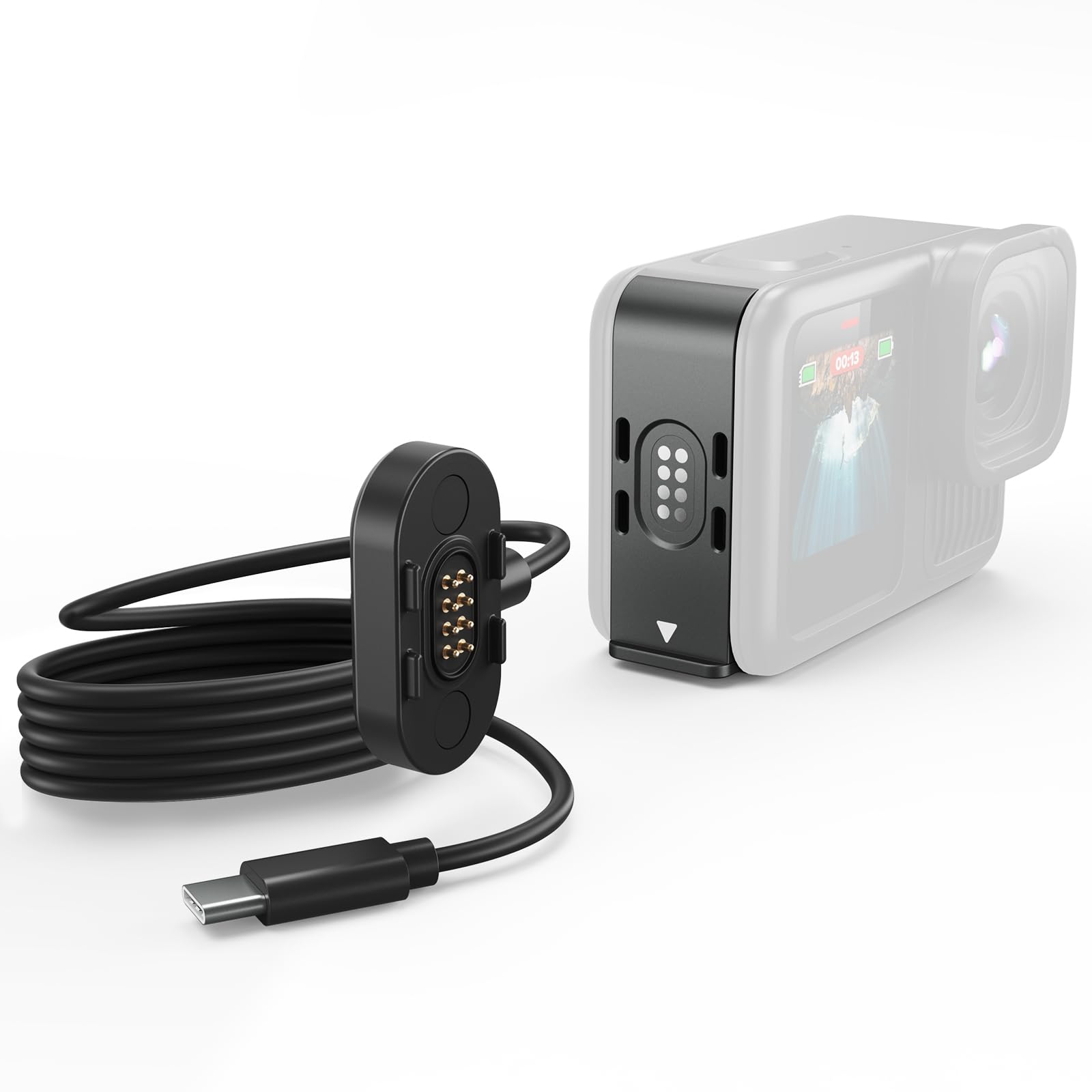 Magnetic Side Cap Charger for GoPro, Battery Charger Cable and USB-C Power Cable Kit for GoPro Hero 9/10/11/12/13 Waterproof and Snowproof Design, Replacement Charging Lead for Go Pro Accessories