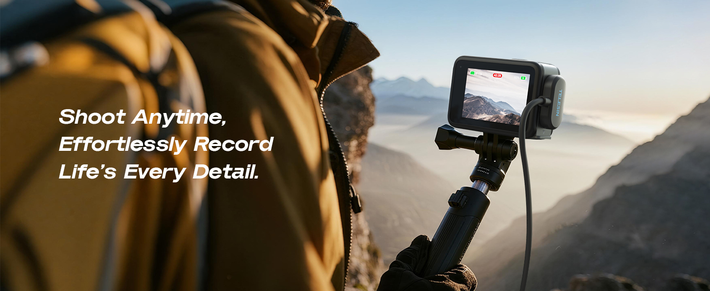 【Continuous Power Supply, No Battery Replacement】Say goodbye to constantly changing batteries. Ideal for long-distance trips, outdoor adventures and extended use – for focused filming without interruption.