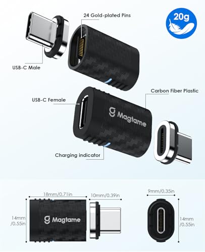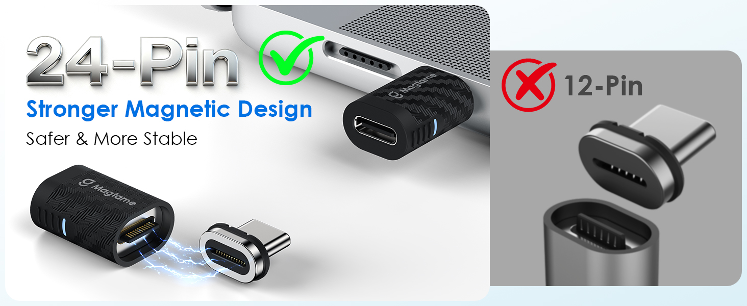 Upgraded 24-Pin Magnetic USB-C Adapter: Features a precision-engineered 24-pin interface that delivers stronger magnetic alignment and higher signal stability than 9-pin models. The gold-plated pins maximize conductivity, ensuring consistent power delivery, faster response, and long-lasting performance.