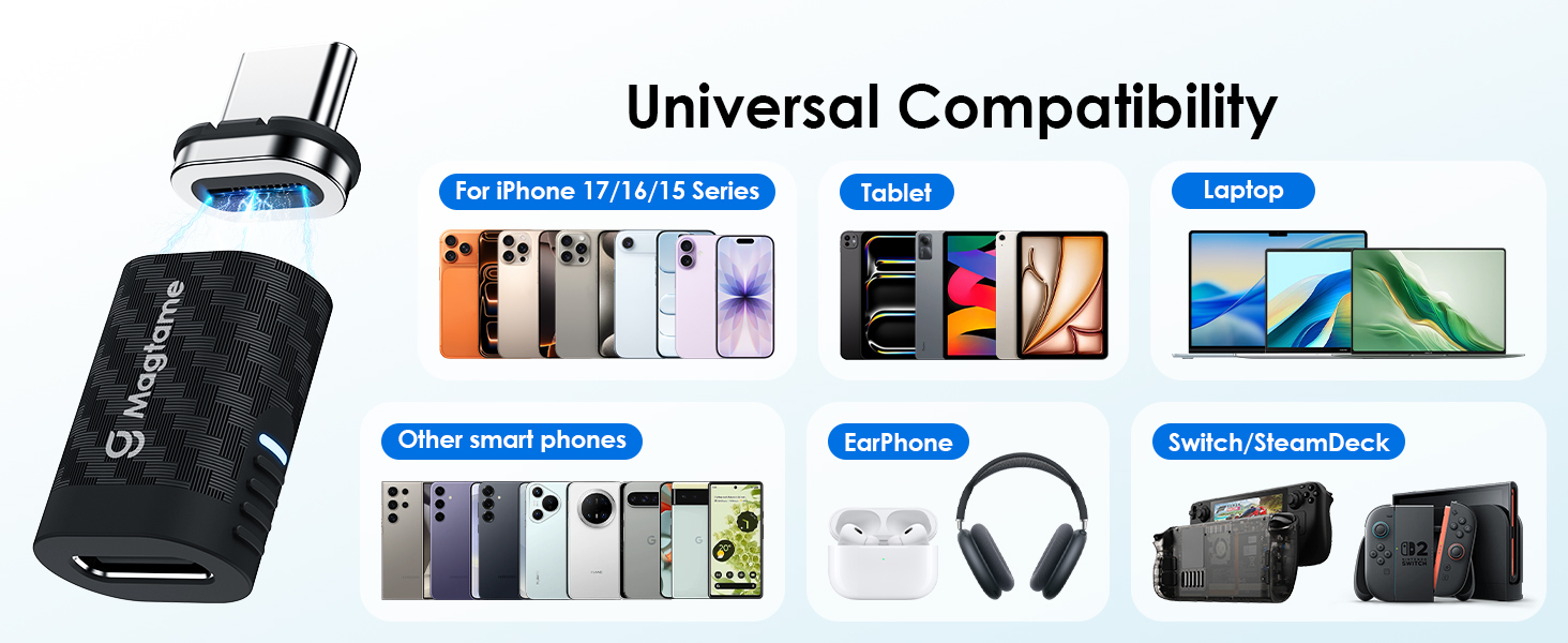 Premium Plastic Fiber Shell: The magnetic USB-C male to female adapter features a durable Plastic Fiber housing for superior heat dissipation, scratch resistance, and a sleek texture. It keeps your device looking premium while protecting the port from daily wear and tear.