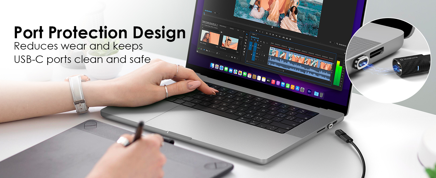 Dust-Proof Magnetic Design & Extended Port Life: Protects Type-C ports from dust, lint, and debris. Ideal for gamers and frequent users — helps extend port lifespan and maintain clean, reliable connections for i-Phone 17/16, USB3/4, Switch, Laptops, PS5, PSVR2 and more USB C devices.