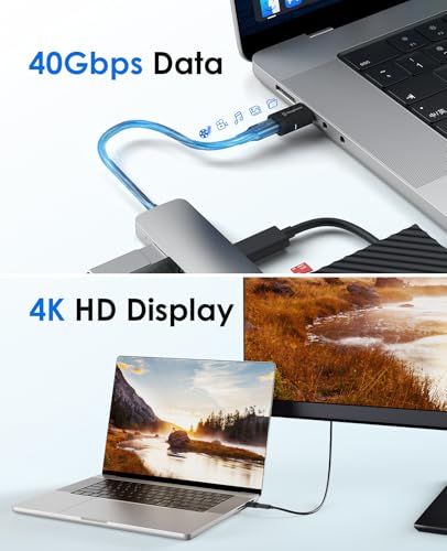 40Gbps Data Transfer & 4K Video Output: Delivers 40Gbps transfer speed and 4K@60Hz video output. Perfect for gaming, streaming, or transferring large files. (Note: 40Gbps data transfer speed depends on USB devices and cables used).